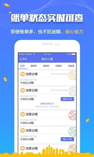 1.只需手机操作,3分钟审批,不花钱把商品带回家!2.分期账单金额、期数实时可查,省心省力