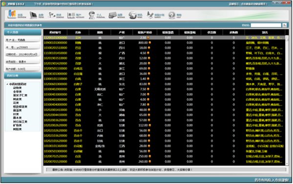 2、提供供求信息发布平台,用户可以注册会员交费后,在平台自由方便发布供求信息,并且可以免费查看供求信息。 3、提供全国中药材道地的品种分析、产地信息、综合评述、全国各大药市的信息。并且直接可以从《药材盈中药材行情信息查询分析系统》进入我司的官网,进行药材信息查询。