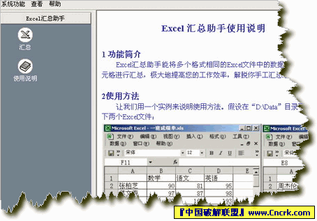 《Excel汇总助手》能快速汇总多个相同格式的excel文件,帮助您轻松汇总日报、月报、季报、年报或者下属单位上报的报表,大大提高您的工作效率。它使用方便,5分钟即可上手。欢迎使用!