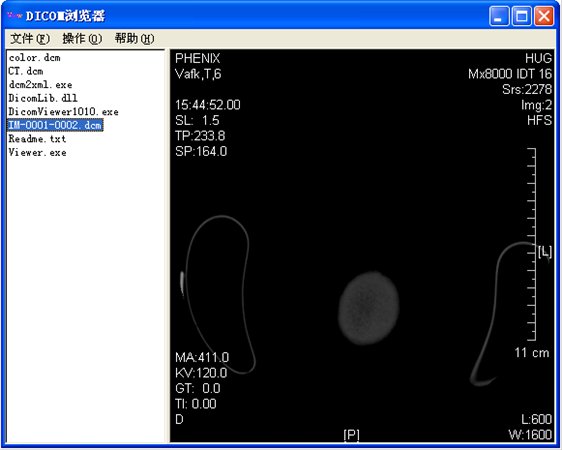 DICOM图像浏览器可用于查看各类DICOM图像文件(CT、CR、DR、DX、MR、US...)。dicom浏览器读取和显示DICOM图像文件,并支持简易操作:窗宽窗位调节,直线、角度等测量,多帧影像播放,JPEG格式导出。