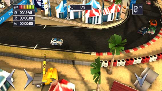 棒棒赛车(Bang Bang Racing)是一款拥有着华丽图形界面的赛车游戏,它采用了俯视视角,与其他采用类似视角的游戏不同的是,这款游戏的界面华丽程度和模型的精细程度都已经达到了Android 平台上的巅峰,这款游戏特别针对采用 NVIDIA Tegratm 和 NVIDIA PhysXtm 技术的移动设备进行了优化,画面效果达到了前所未有的高度。一颗强劲的心脏才是《棒棒赛车》运行良好的有力保证,看到这里可能有些朋友会失望,毕竟不是人人都拥有顶级配置的高端手机,呵,这款游戏很有点儿只可远观不可近玩的感觉。当然如果你很有幸拥有一台装备Tegra2 双核处理器的手机,这款游戏你一定不能错过。它并不像《都市赛车6》或《速度与激情5》这类影片级游戏那般大气磅礴,甚至跑车外型圆圆的,有种傻乎乎的可爱,但你一上手就会被它深深吸引。赛车游戏应具备的特征,它全部完美的展现了出来。