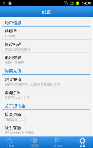 4、短信宝功能完善:短信宝具备短信上行、短信下行、短信转发、短信分组群发、个性短信群发、返回报告、余额查询、通讯录分组管理、联系人智能检索匹配、手机充值、常用短语等功能