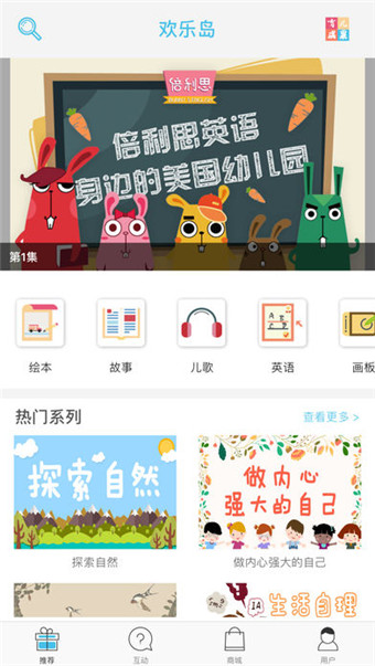 中数欢乐岛APP包含了故事书、绘本、儿歌等不同的教育与素材,全方位为家长提供教育素材。中数欢乐岛的故事书、绘本、动画、都可以让孩子参与其中。