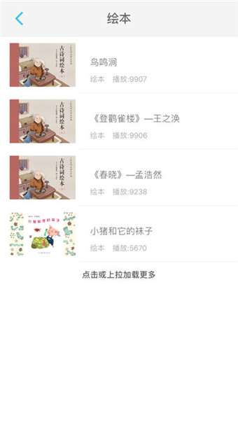 绘本浏览与阅读功能,支持离线下载阅读音频资源浏览点播功能,包含儿歌与听听