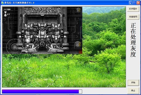 莽荒纪-文字画转换助手是一款能将图像文件转换为文本画的软件,程序使用简单无需安装,打开后选择要转换的图像文件,点开始转换,转换完毕后可以复制粘贴或保存为文本文件。