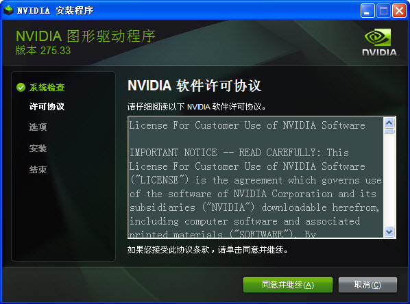 打开下载好的NVIDIA显卡驱动,会自动检测系统是否兼容。