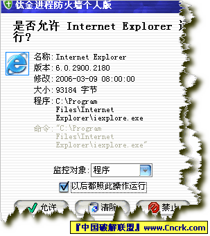 黑客、木马、病毒的活动都会在注册表和进程中有所表现。钛金进程防火墙是监控进程是否有异常现象的防火墙。网络防火墙、注册表防火墙、进程防火墙“三墙合一”是当前上网冲浪的最佳组合。