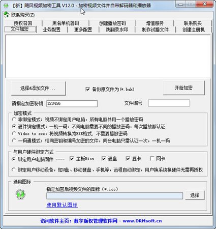 新飓风视频加密工具支持各种视频的高速编码加密与高速解码播放,加密后的文件自带解码器和播放器;该视频加密软件可以加密各种视频音频格式文件(wmv,avi,mpg,rm,rmvb,mp4,flv,vob等),加密后的文件可以通过离线方式授权播放,也可以通过网络方式授权播放;只需要加密一次,就可以实现一机一码授权;