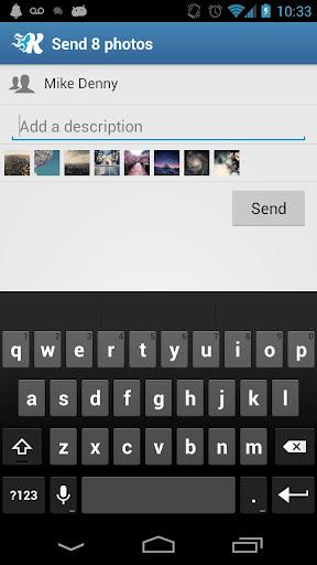 Kicksend是当下很热门的手机文件传输工具,支持照片和视频传输,能够很好的保护好你的隐私。完全质量一次发送多达30张完全质量照片到任何电子邮箱地址或给任何Kicksend用户。