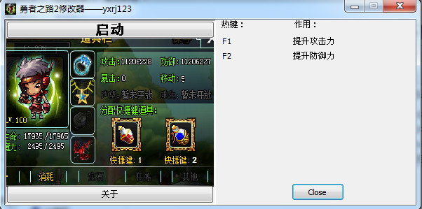 勇者之路2加强版修改作弊工具,可以加强攻击力和提升防御力 使用方法 1、运行游戏和修改器 2、更换武器和防具 3、按F1和F2 4、更换武器和防具,看看攻击力和防御力是不是增强了