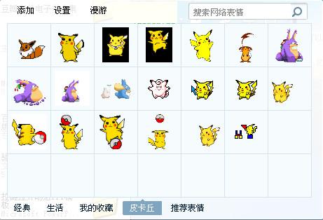 皮卡丘表情 免费下载 皮卡丘表情包变身,跳舞,招手,左右动,拍肚子,抖尾巴,吐舌头,跑,伸手,扛着袋子走,招呼,鼠标指针,跳,走着摔倒,推球,项球,踩球,将球顶起,吸东西。