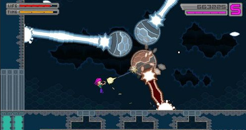 血流这款对机器配置要求并不高的横版射击游戏就有一种让人爱不释手的感觉。游戏节奏完全靠玩家自己掌控,游戏时玩家在空中可以做出3连跳的动作,非常酷炫。