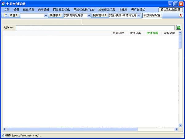 安美奇浏览器是一款以C#开发基于IE内核的多功能站长专用浏览器,内置七项功能:无广告模式,网址导航,内容采集,内容编辑,自动点击,信息查询,网站推广等功能,所有功能均为免费是广大站长的不二选择。