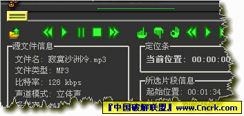 Cooolsoft MP3 Sound Cutter (音频截取工具) V1.41 绿色版 MP3 Sound Cutter 是一款方便的 MP3/WAV 音频截取工具。您可以利用该软件截取 MP3/WAV 文件中的任意一段,精确度可达1毫秒。您也可以用它去除 MP3/WAV 中不想要的一段,并实现首位两段的无缝结合。软件支持输出为 MP3 和 WAV 两种格式,并可以自定义输出 MP3 文件的比特率。软件还支持对输出后的文件加入淡入淡出效果,以便批量操作