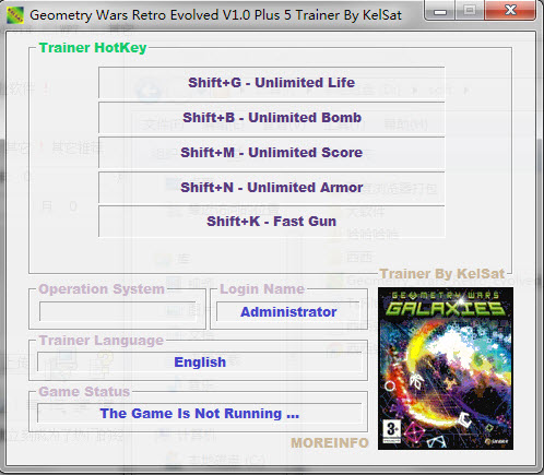 几何战争五项修改器可以修改无限生命无限炸弹无限得分无限子弹快速射击属性的修改器.