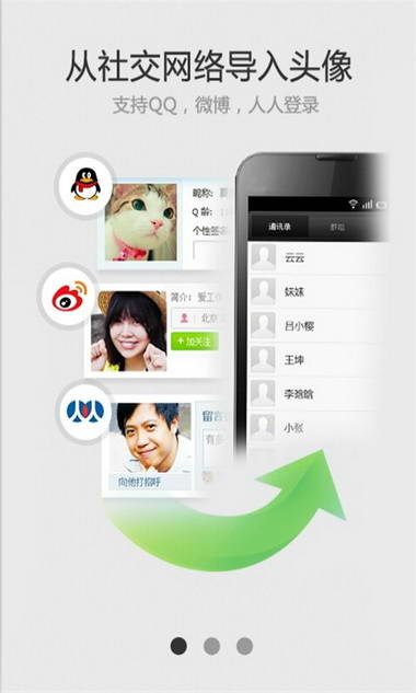3、智能导入腾讯、新浪微博、人人好友头像