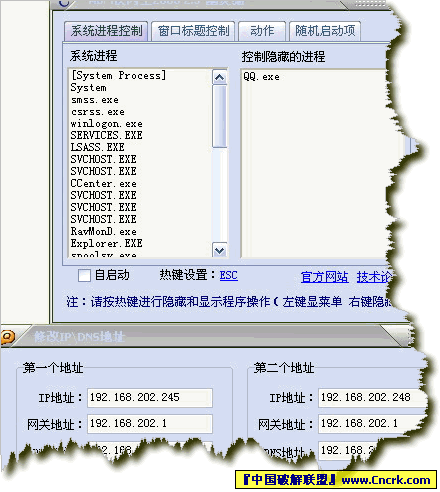 运行.exe文件,你的桌面右下的托盘中有个小图标 ,在小图标上点鼠标右键,是出现菜单 ;点左键或按F2 是执行动作。在你要隐藏的系统进程上双击会选定到右边的隐藏进程中,以后你按F2或在小图标上点鼠标左键是执行动作在公司上网玩游戏的隐藏利器哦。
