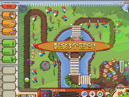 游戏的规则和塔防游戏类似,最初只有100元金币,可以购买一个最低级的火枪手来防御花园,然后通过防御塔来消灭害虫,获得金钱,从而购买更多的防御塔!地图的重点就是防御塔放置的地点非常重要,要尽可能的把打击面扩大,使得可以消灭更多的害虫!在这个游戏中可以自定义游戏的速度,而且有些放置了的防御塔可以被移动到其他地点!