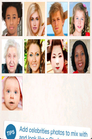 想知道自己变成女人是什么样子吗?想知道自己回到小时候又是多么可爱吗?又或者变成帅哥或者美女呢?只要拍张照片或者在相册中找一张原来的照片,然后对准自己的脸型,再找一张游戏自带或者用你女友/男友的照片,合成,等待...然后开心的时刻来临了:你会看到自己另一个样子,或者和自己爱的人合成一张照片后的样子!很奇妙呢!!也许会有点可爱,或者搞笑,但是我们不就是为了开心而玩这款游戏的吗?赶快下载下来和朋友一起分享吧!