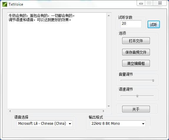 文本转语音软件可以将txt文本转换为wav音频文件,存入mp3播放,作为有声小说,听书使用。 这个软件特长是将txt转化成音频文件,相当于自动生成语音小说,不建议将它作为一个阅读器,这不是它的长处。