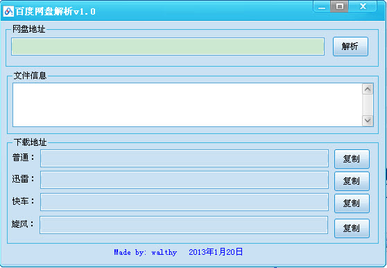 吾爱百度网盘地址解析器是一款绿色免费的百度网盘下载工具,通过使用这款软件,您可以直接将自己需要下载的百度网盘资料的网址复制到该软件的网址栏中,然后点击解析下载即可进行下载,操作简单,而且实用,值得下载!