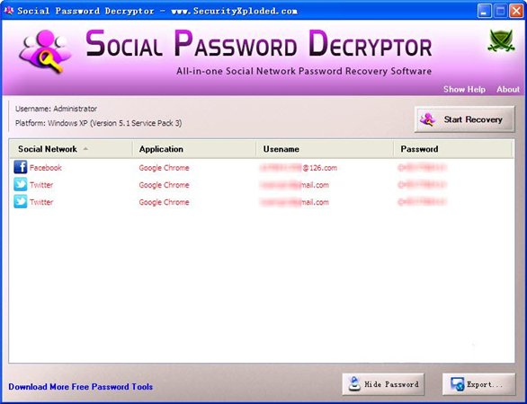 Social Password Decryptor是一款非常有用的社交网站密码找回工具.