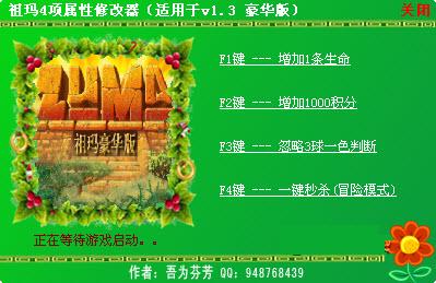 祖玛豪华版六项属性修改器 绿色版 祖玛豪华版六项属性修改器是一款祖玛豪华版修改器,针对同名游戏的辅助和作弊工具.