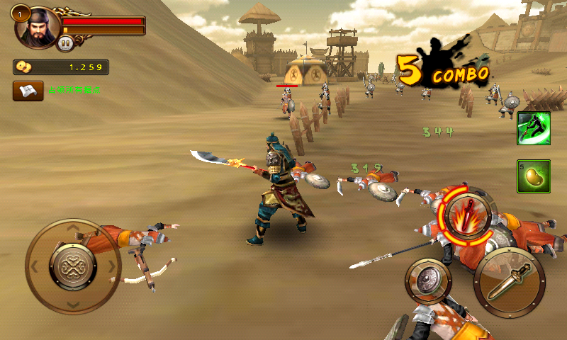 三国志无双战 The Heroes of Three Kingdoms是一款无双类的游戏,而且本作的制作商还是一家韩国公司。游戏采用的是全3D画面,不过画面的显示效果并不是很理想。角色的建模还算过得去,身上穿的盔甲以及所持的武器细节刻画还是比较突出,敌兵的装扮也比较丰富,不会出现清一色的“大众脸”(虽然事实上我们也看不清楚他们的脸)。战斗时武器打在敌人盔甲或者盾牌上会产生火花,释放技能时也有比较绚丽的光影效果。场景方面整体的古代中国风感觉把握还算到位,光看画面可能会误以为是中国的制作商开发的游戏。【游戏操作】