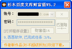 杉木百度文库财富值是一款绿色的百度文库财富值自动获取器。该软件会辅助用户每天参加百度文库的【签到任务】+【文档分类】任务,自动操做。