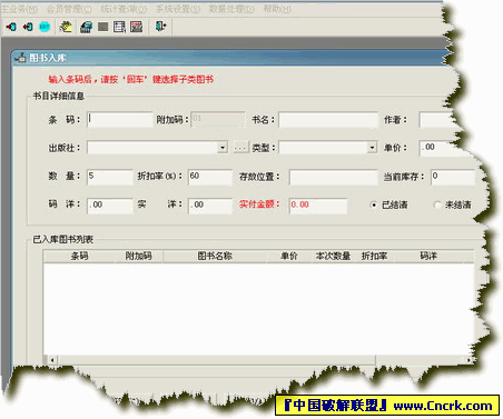 华图书店管理系统是主要针对中小型书店进行开发的日常业务管理软件,完全根据中小型书店的业务特点及其经营的灵活性. 软件包括五大功能模块: 1:主业务,包括:入库,销售,盘点,库存维护,报损,未结帐的处理; 2:会员管理,包括:会员登记,会员业务查询; 3:统计查询与分析,包括:库存查询,业务明细查询,销售排名查询,报表统计,包括日销售业务报表,及指定时间的业务统计报表; 4系统设置,包括:系统信息维护(出版社,图书类型,书店信息,折扣信息,是否打印小票。。。),系统用户及权限管理(保证系统的使用安全); 5数据服务,包括:数据库备份,数据库恢复,导出业务数据,导入业务数据(支持多书店模式)。 另外由于考虑当前中国出版的混乱,条码的不唯一性,系统专门添加附加码,以增加对所有图书的管理,同时,该软件支持条码扫描,具有报表打印和小票打印的功能,希望能成为你书店管理的好帮手 另外,该系统有对应的网络版本(满足对大数据量的管理),如果您的书店面积在100平米以上,建议使用网络版本。