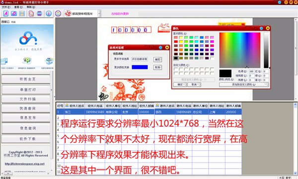 1.多功能:集套打单据、文件扫描、快递查询、物流信息等功能于一体。