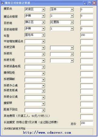 搬家价格计算器是一款针对个人、公司在搬家时,计算搬家费用的工具。用户通过该软件,可以清楚地了解自己在找搬家公司搬家时,每一个环节所产生的费用,以及总的搬家费用,一目了然。