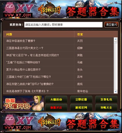 街机三国答题器倾情上线!万能的答题器助你问鼎三国智多星!街机三国答题器库存了大量问题的答案,欢迎大家使用。我们会不断更新题库!同时欢迎大家在论坛发帖丰富我们的题库,我们会提供相应的奖励!