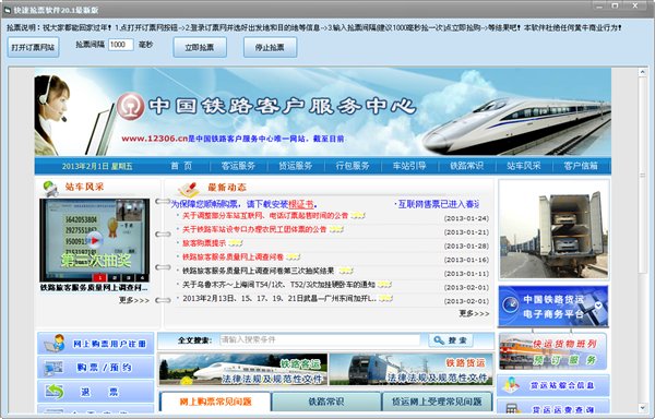快速抢票软件 20.1 最新版 春节期间出行最担心什么?当然是火车票问题。忙活了一整年,只为回家过年,吃个饭!这款抢票软件能快速抢到票,刚做完,自已抢了两张,大家拿去用吧!祝大家都能用这款抢票软件抢到票,回家过个团圆年。