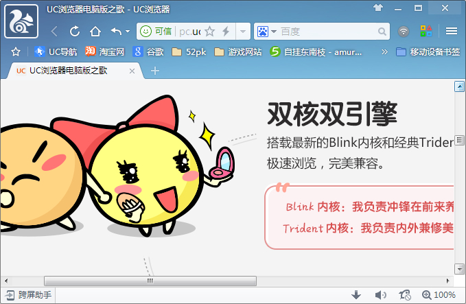 双核双引擎:搭载最新的Blink内核和经典Trident内核,极速浏览,完美兼容。