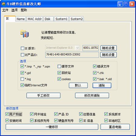 电脑硬件修改大师是一个可以修改所有电脑硬件信息,也是做网赚朋友必备的好工具!牛B硬件信息修改大师是修改电脑所有硬件、系统信息的软件,很好很强大,要用的朋友,请一定记住,到虚拟机去用。不然会导致你购买的采集软件用不了。