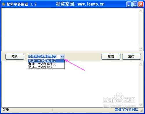 1、打开“简体繁体转换器”,进入主界面。如下图,选择转换的模式,比如简体字转成繁体字。