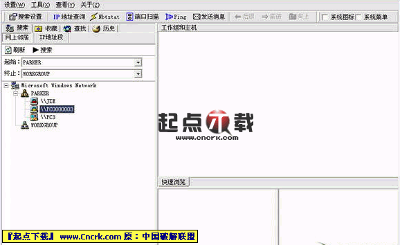 3.内置nbtstat,能快速查找某一IP网段内的所有主机,并根据IP地址得到对方主机的主机名、工作组名、用户名、MAC地址,速度极快。能将扫描和搜索的结果保存成文本文件或excel电子表格文件。
