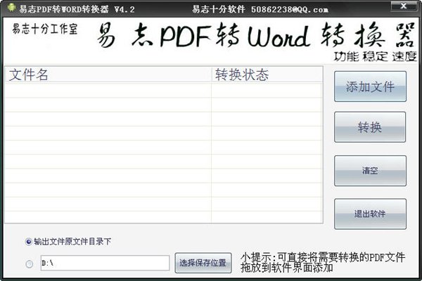 易志pdf转换成word转换器可以帮你将pdf文档转换成word文件,减少工作负担,支持图文混合排版。大大的减少工作量。易志pdf转换成word工具是免费的。操作简单,功能强大,界面整洁。稳定高效。