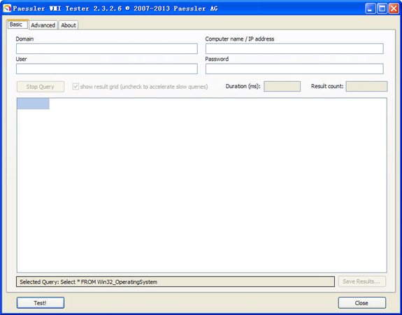 测试WMI计数器工具(Paessler WMI Tester) v2.3 绿色版 测试WMI计数器工具(Paessler WMI Tester)是一个用于快速、 轻松地测试WMI计数器的辅助功能的工具。"Windows 管理规范"是用于监视和管理基于 Windows 系统的从微软最新的技术。WMI 允许进程读取数据为许多 Windows´配置参数,以及系统状态的当前值。访问可以进行本地或远程方式通过网络连接。