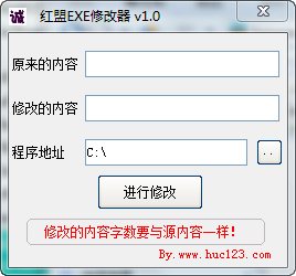 红盟可执行程序修改器也被称作红盟EXE修改器,该软件使用很简单,载入未经过加壳的软件,即可将软件内字符串文字修改成自定义内容