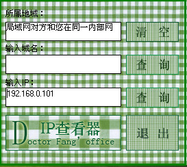 方医生IP查看器用于查询域名主机ip地址,网页来访者ip地址等,在相应的文本框中输入 ip地址可显示相应的域名,也可输入域名显示出相应的主机ip。
