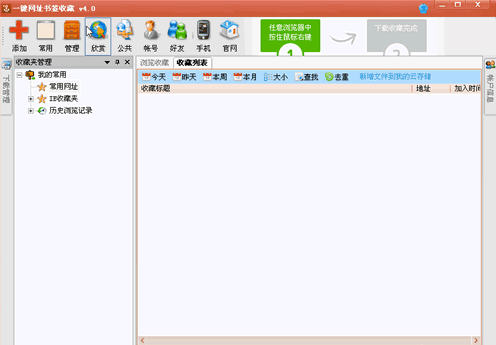 一键网址书签收藏是一款免费的网址书签收藏工具,它支持任意浏览器,只需一键即可收藏您喜欢的网址或者书签,方便你下次查看。