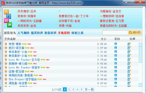 布衣手机铃声下载大师 V2.0 mp3免费下载 布衣手机铃声 mp3免费下载工具可以方便的找到各种免费手机铃声、各种最新最热门手机铃声任意下载!而且全部铃声都是免费的哦。