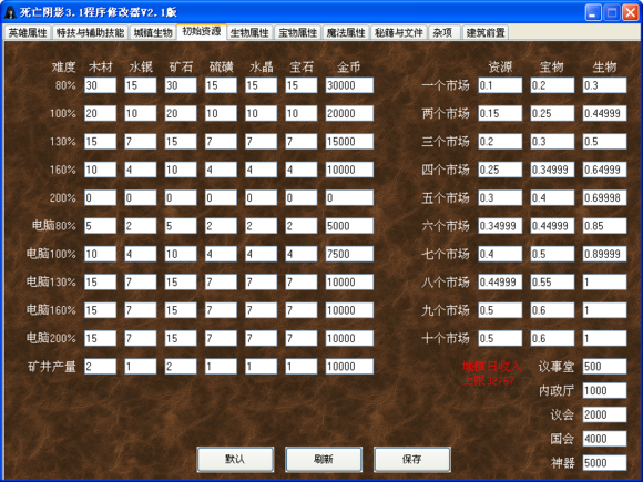 各难度下玩家和电脑的初始资源和矿井的产量修改。