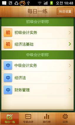 每日一练是中华会计网校每日一练栏目的手机版。学员可以随时随地的做题练习,做题后可以查看对错以及题目的讲解,同时还可以查看一段时间的专家点评,巩固学习。手机版新增了成绩排名功能,丰富了学友间的互动。不积跬步无以至千里,每日一练让您每天都进步一点。
