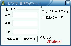 地产大亨童话故事修改器,针对模拟经营游戏《地产大亨童话故事》的作弊器和辅助工具。功能:金币数量修改 精灵修改 石头 关卡时间锁定为零 注意要“保存数值”