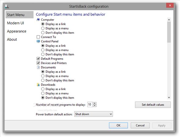 在“Appearance”中,可以设置开始菜单的风格,比如windows7原本的aero风格,或者是windows8的Metro风格,文章上方的截图为aero风格,一共有3种风格可供选择。当然,还可以方便的自定义开始菜单的图标,更加人性化的是,软件还会提供一个专门下载开始菜单图标的地址给你,更加方便你选择。有了它,你可以抛弃start8了。