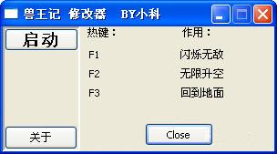 兽王记修改器是同名FC红白机游戏的辅助,降低了游戏的难度同时还给玩家带来更多欢笑,实在是不可多得的神器。功能: F1 闪烁无敌 F2 无限升空 F3 回到地面