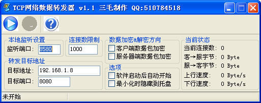 TCP网络数据转发器 功能特点: